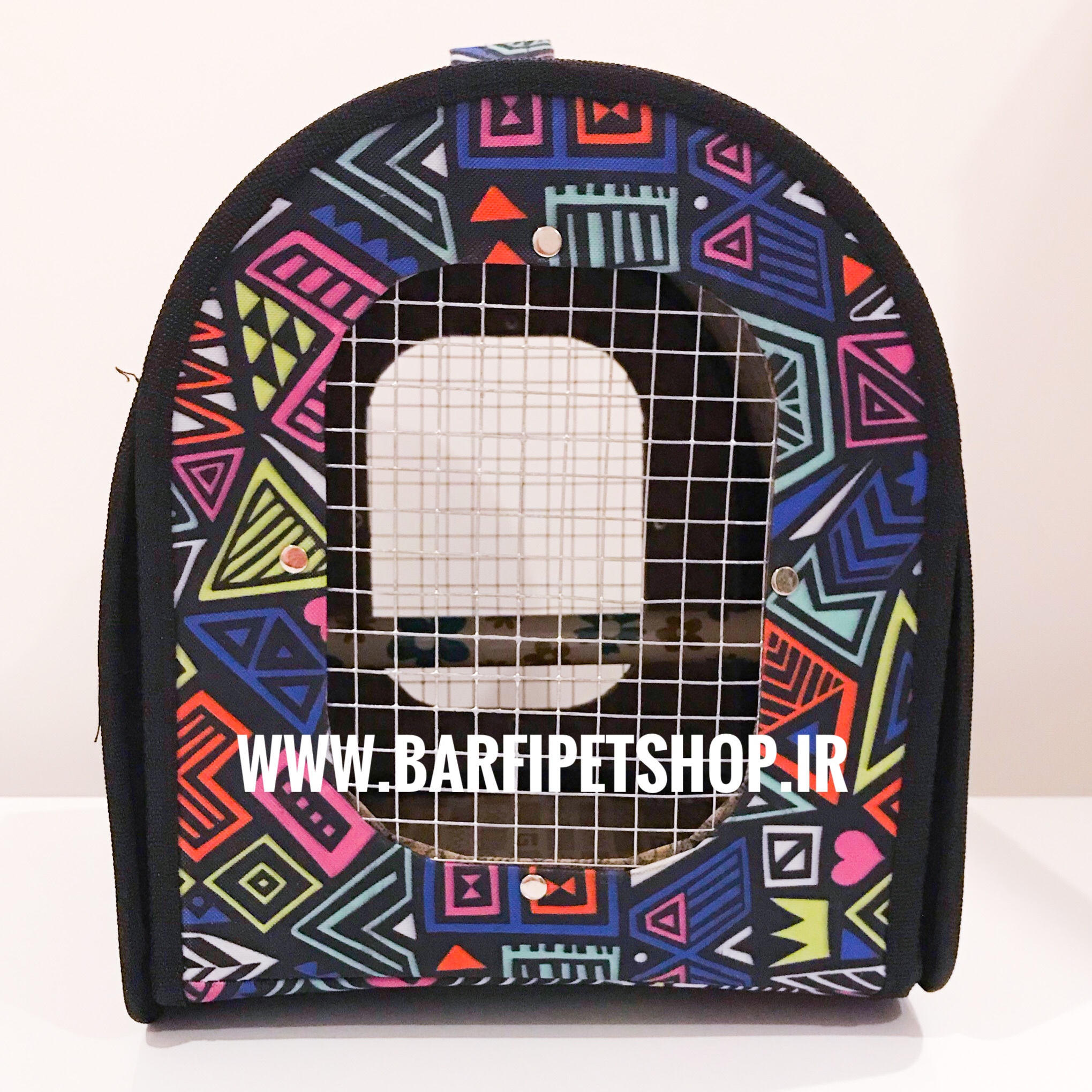 تولیدکننده در ساخت این کیف از پارچهای مقاوم، باکیفیت و کاملاً قابل شستشو استفاده میکند. طراح با بهکار بردن طرحهای رنگارنگ هندسی روی بدنه، علاوه بر ایجاد جلوهای زیبا، دوام کیف را در برابر ضربه و رطوبت افزایش داده است. آستر داخلی را از پارچهای نرم و تمیز دوختهاند تا پرنده هنگام جابهجایی احساس امنیت و آرامش داشته باشد.