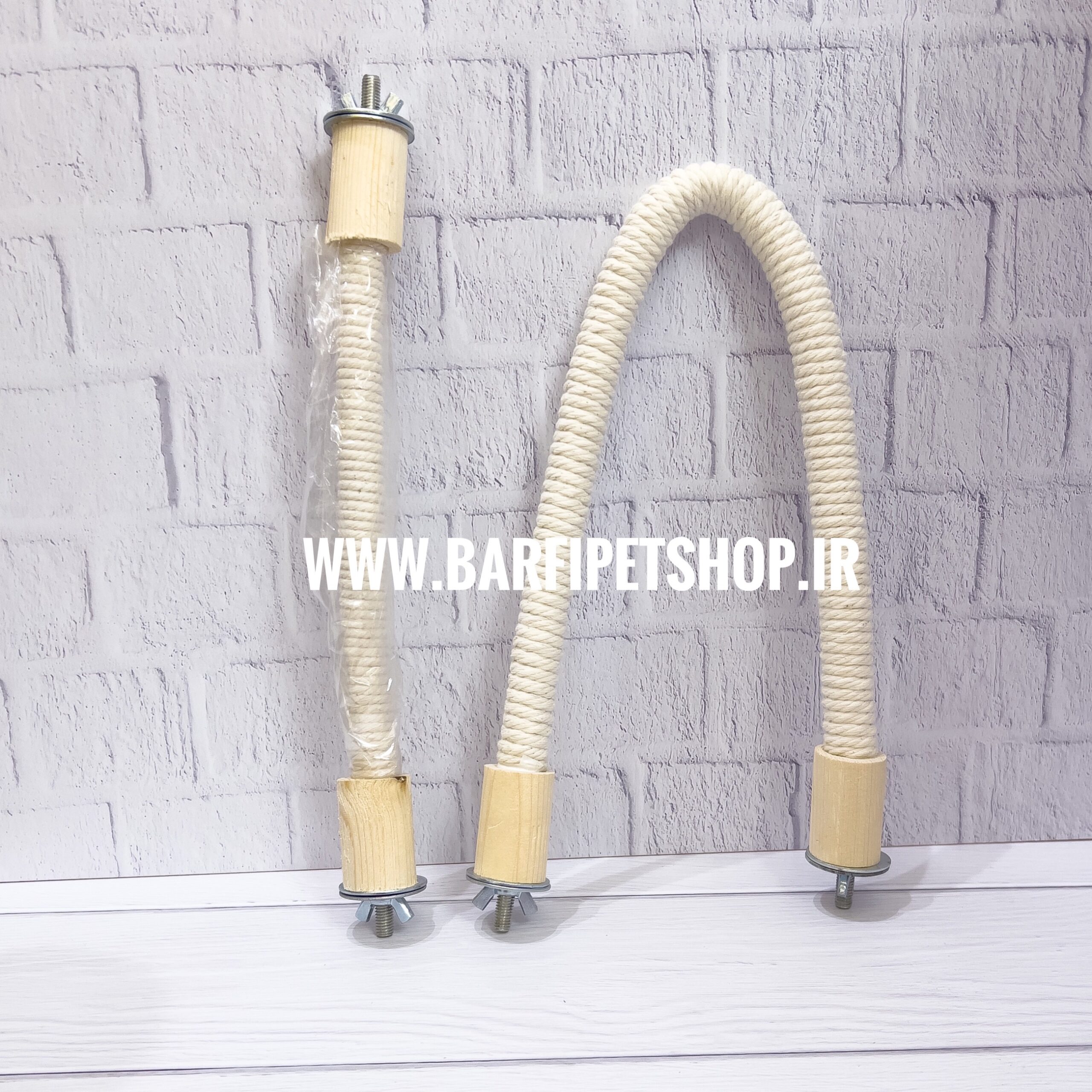 نشیمن کنفی طوطیسانان یک میلهی نرم و انعطافپذیر است که روی بدنهی آن طناب کنفی پیچیده شده و دو سر آن به کمک پایهی چوبی و پیچ فلزی به دیوارهی قفس وصل میشود. این نشیمن جایگزین مناسبی برای چوبهای خشک و میلههای فلزی یکنواخت به حساب میآید و به پای پرنده اجازه میدهد روی سطحی متفاوت و راحتتر قرار بگیرد.